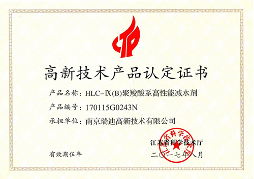 我公司研发的HLC-IX(B)聚羧酸系高性能减水剂于2017年8月通过江苏省科学技术厅认定,11月颁发了高新技术产品认定证书。目前,公司已有6个新产品被认定为江苏省高新技术产品。 该产品为公司的专利产品(ZL 201510323713.6),集高减水、保坍、增强等多重功能于一体,具有掺量小、减水率高、混凝土坍落度经时损失小、适应性好等优点,适用于配制高性能混凝土、高强混凝土、喷射混凝土等。该产品在公司研发团队的攻关下,攻克了高温、高含泥、超长时间(6.5h)运送条件下混凝土施工性能调控的难题,凭借独特的技术优势,从国内外减水剂著名供应商中脱颖而出,成功应用于巴基斯坦的“三峡工程”尼勒姆-杰勒姆(N-J)水电站工程,获得了外方建设、监理单位的一致好评。 |