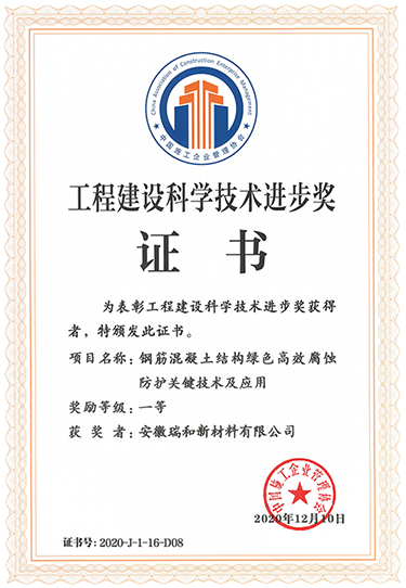 | 喜报!安徽瑞和新材料有限公司荣获2020年工程建设科学技术进步一等奖 | |