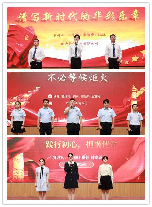 为深入学习贯彻习近平总书记在庆祝中国共产党成立100周年大会上的重要讲话精神,推动党史学习教育深入开展,9月14日,南京水利科学研究院举办“感悟思想伟力 争做先锋力量”青年演讲比赛,公司团支部共选送了3个作品参加比赛。 由李雨虹、崔征、封嘉蕊演讲的《以榜样为“镜”——践行初心 担当使命》,主要围绕公司帮扶队员段国荣为保障贫困独居老人的出行安全,不畏严寒安装路灯、技术骨干刘兴荣去往金川水电站途中不惧高原反应,攻坚克难践行工匠精神、抗疫先锋杨涛、刘永生在疫情期间坚守岗位,为瑞和基地安全生产保驾护航等故事展开,表示“榜样的力量是无穷的”,身为新时代的青年,自当以他们为“镜”。 由王文银、秦智峰、沈航演讲的《谱写新时代的华彩乐章》歌颂了新中国成立以来我党带领人民探索发展的百年历史,讲述了高新人以无畏精神一举解决了四川锦屏一级水电站大坝主体工程施工和运用中存在的隐患问题以及在巴基斯坦N-J水电站项目中创新研发出高温环境下超长保坍性能聚羧酸系高性能减水剂的感人事迹,号召新时代青年要继承并发扬前辈的优秀精神,争当新时代洪流中的“搏浪者”。 由杨涛、徐唯唯、胡宁、唐昳昕、胡蕃柽演讲的《不必等候炬火》讲述了2020年全国疫情爆发,一群勇于担当的高新青年们排除万难,用不到一个月时间就完成了瑞和基地试生产前准备工作,保证基地顺利通过试生产验收的故事和2021年7月南京疫情爆发期间,家住南京的青年骨干勇于担当,迎难而上,发挥先锋力量,自觉坚守在瑞和生产基地的故事。 演讲比赛现场气氛热烈,青年选手们声情并茂的演讲赢得了现场阵阵掌声。三个作品紧扣主题,结合自身工作实际及身边典型人物故事,用生动的语言从不同的角度诠释了高新人人无悔奉献、勇于担当、锐意进取、善于创新的激情和脚踏实地、勤于学习、勇争一流的工作态度,抒发了对党的事业和本职工作的无限热爱之情。 经过激烈角逐,公司选送作品获得二等奖2项。同时,公司团支部荣获优秀组织奖。