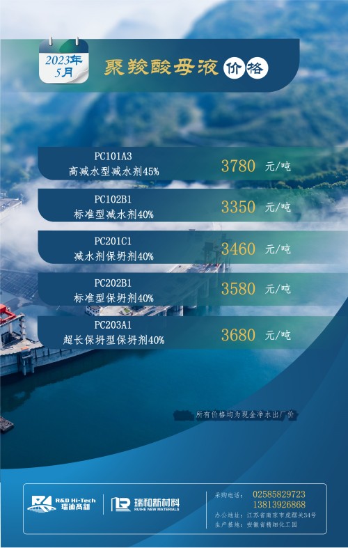 【聚羧酸系减水剂母液月度最新价格】丨2023年5月