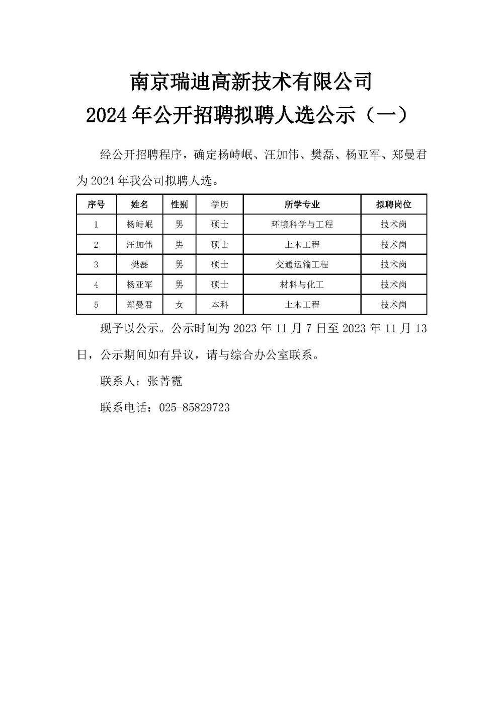 新利体育,新利(中国)2024年公开招聘拟聘人选公示(一)