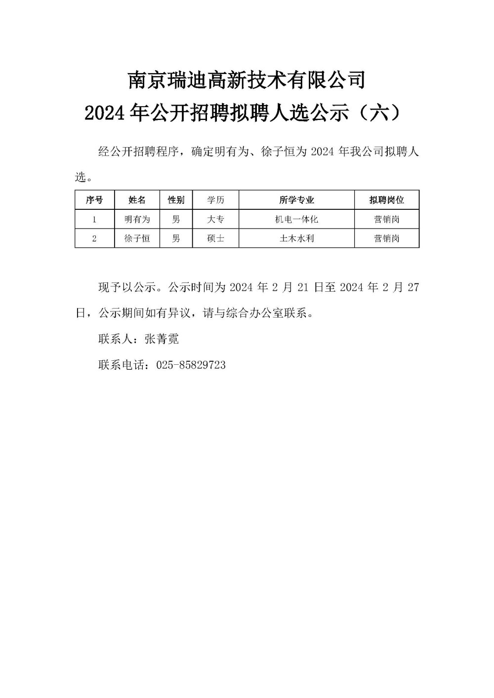 新利体育,新利(中国)2024年公开招聘拟聘人选公示(六)