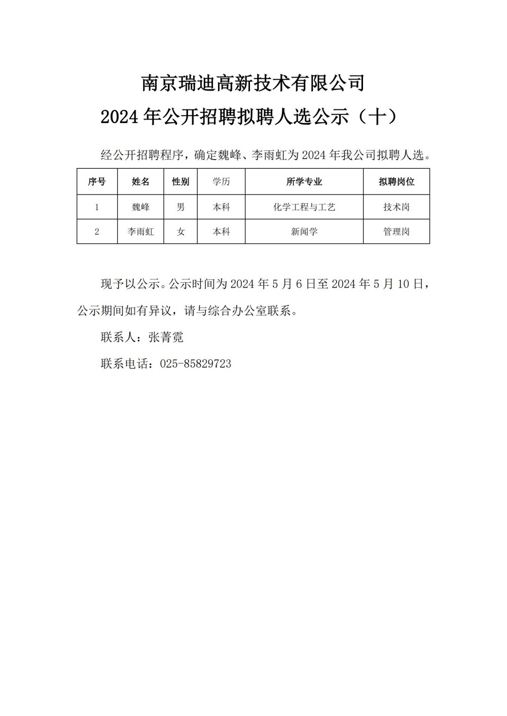 新利体育,新利(中国)2024年公开招聘拟聘人选公示(十)